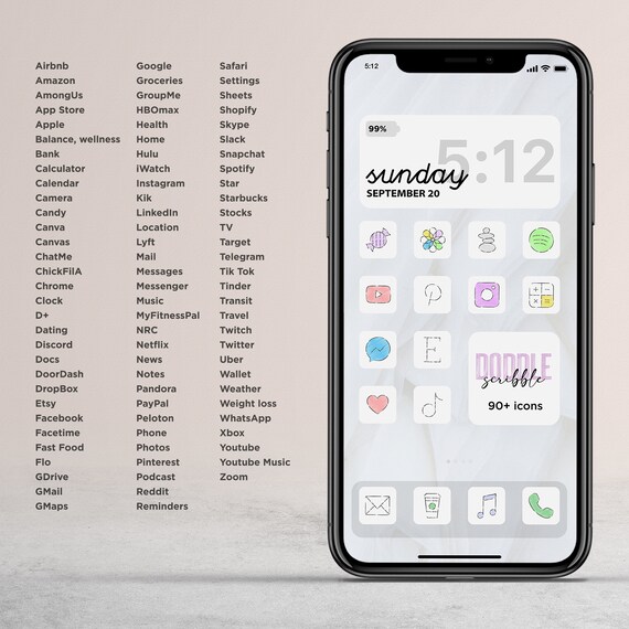 Doodle Ios Icon Pack Aesthetic Iphone Ios 14 Scribble Hand Etsy